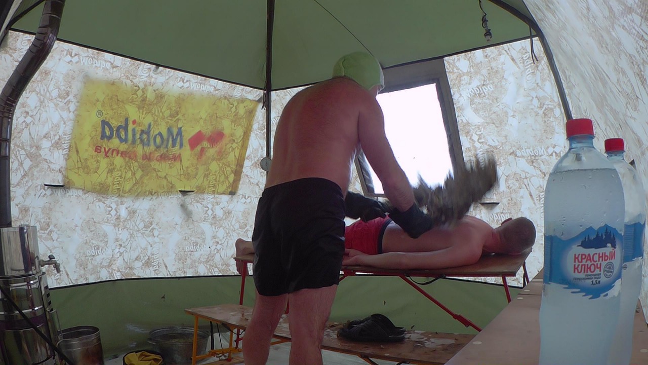 Мы в воскресенье открыли зимний купальный сезон. Снега у нас пока маловато, а реки начало сковывать льдом. Выехали, пока дорога есть, на незамерзающее озеро. Поставили МБ-15 как баню, а МБ-10 с МегаСогрой как переодевалку, заодно и чай вскипятили в котелке. В минус 5 градусов, только с пенофолом на полу, КЦ-4 отработала на ура, напарились вдоволь, а потом окунались в озеро. Температура на уровне окна держалась в пределах 60-75 градусов. Довольно часто поддавали на камни для пропарки, если просто сидеть на полках, то вполне хватает работы парогенератора. Аппетит у печки хороший, спалили 3,5 пачки брикетов, много раз доливали воды, уходила на поддачи. Камушки отработали хорошо, только вот при сборах я их оставил надолго в воде остывать и их немного вспучило и покрошило. Все получили огромное удовольствие от бани. А потом ещё были шашлыки на Шикардосе. Надеюсь в ближайшие дни руки и до видео доберутся. Владелец МБ-10 сказал, что до парения в МБ-15, считал свою баню вполне вместительной... Отзыв с форума: |